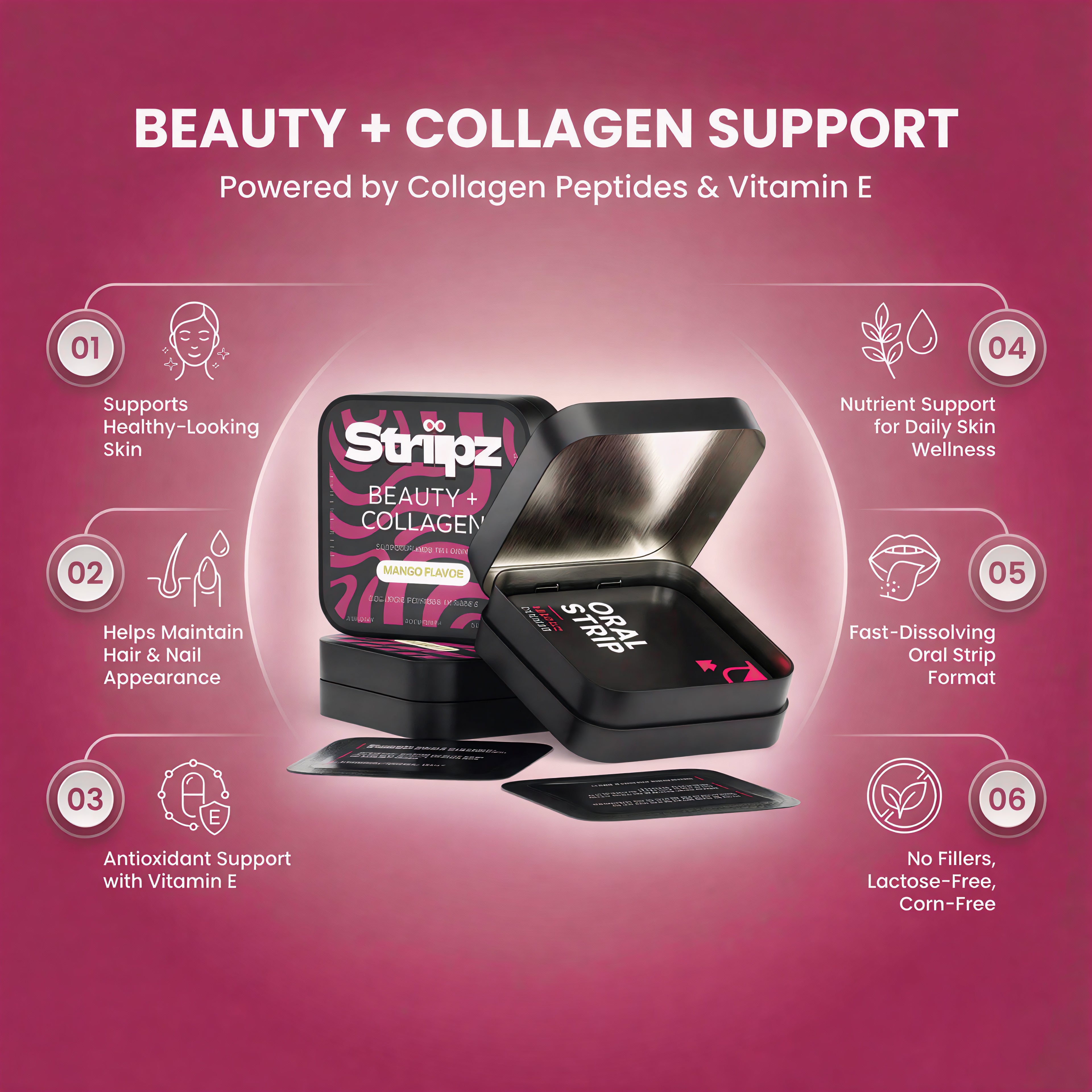 - Easy, On-the-Go Beauty Routine: The fast-dissolving oral strips make it simple to maintain your beauty routine anytime — no water, capsules, or mixing required.