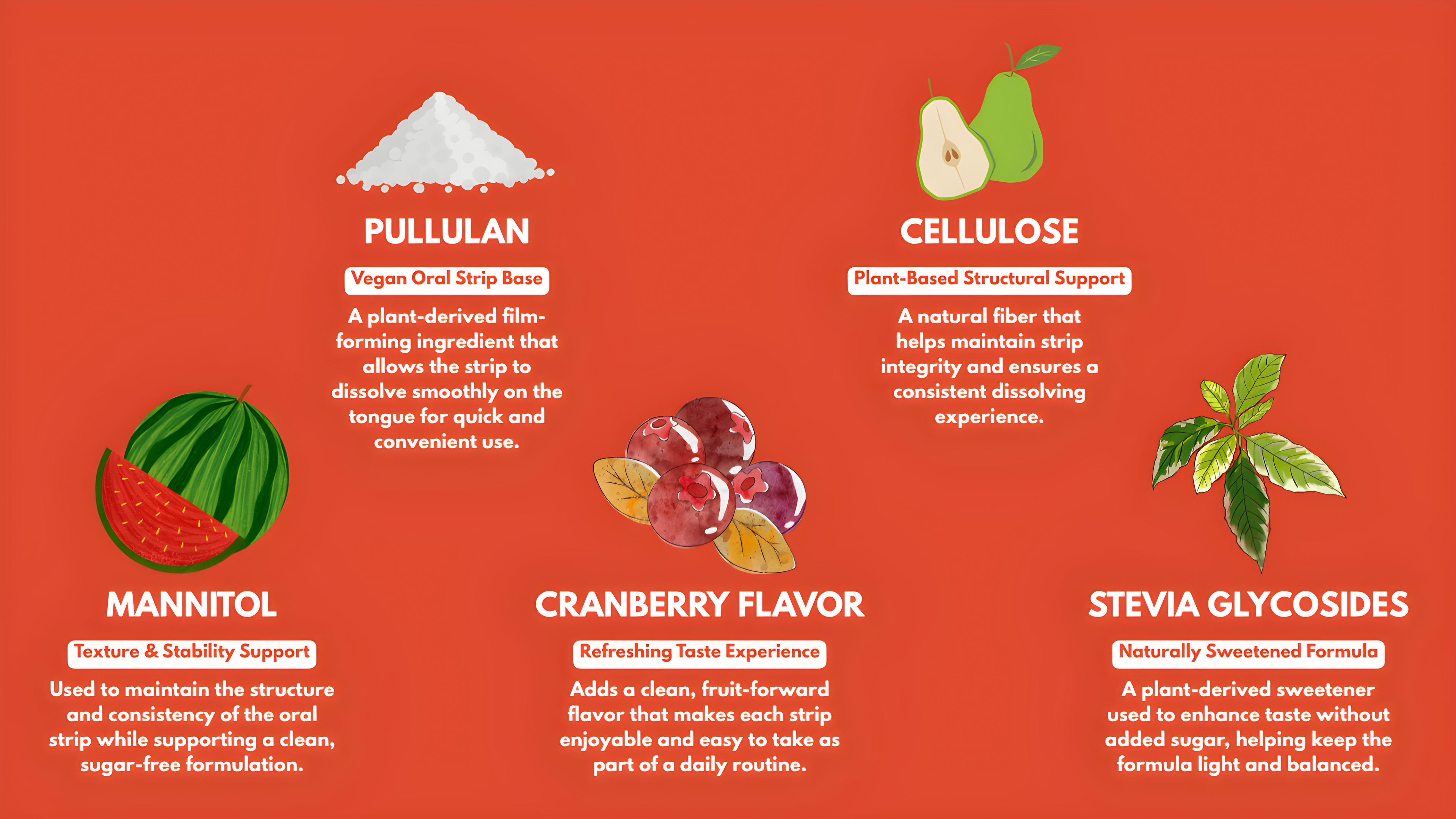 A fast-dissolving strip that delivers clean and steady energy whenever you need it. Formulated with Green Tea Caffeine, L-Theanine and Vitamin B12, Energy Strips support alertness, focus and physical endurance without sugar crashes or jitters. Each strip melts on the tongue for quick absorption, making it an easy on-the-go boost for busy days, workouts or long work sessions.