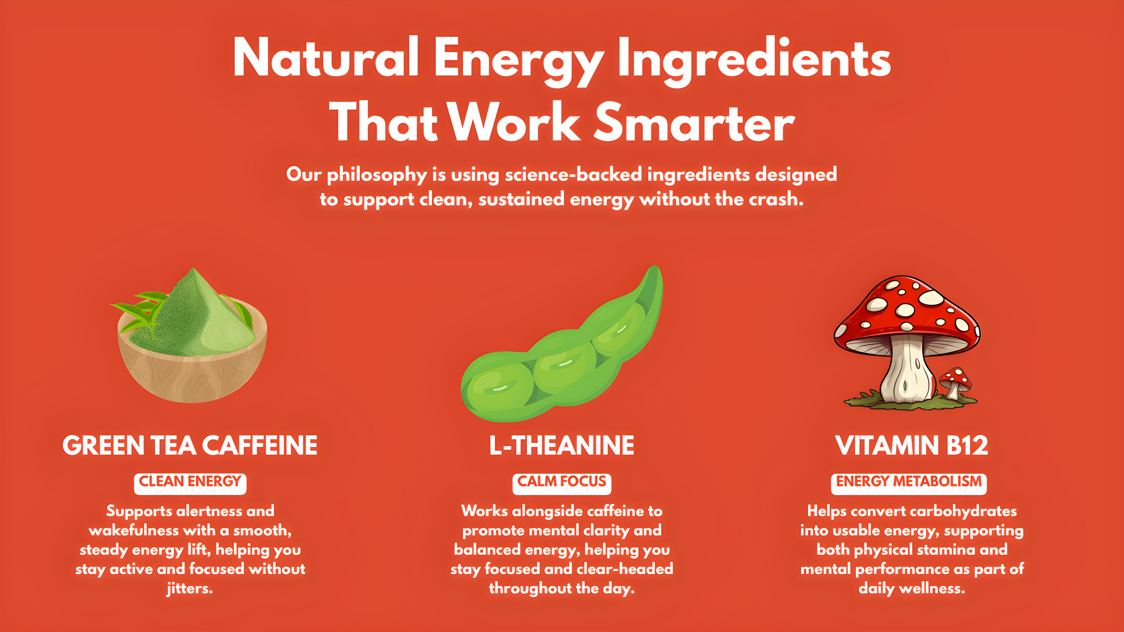 - Supports Steady Energy Levels: The combination of Green Tea Caffeine and L-Theanine promotes smooth, sustained energy to help you stay alert throughout the day.