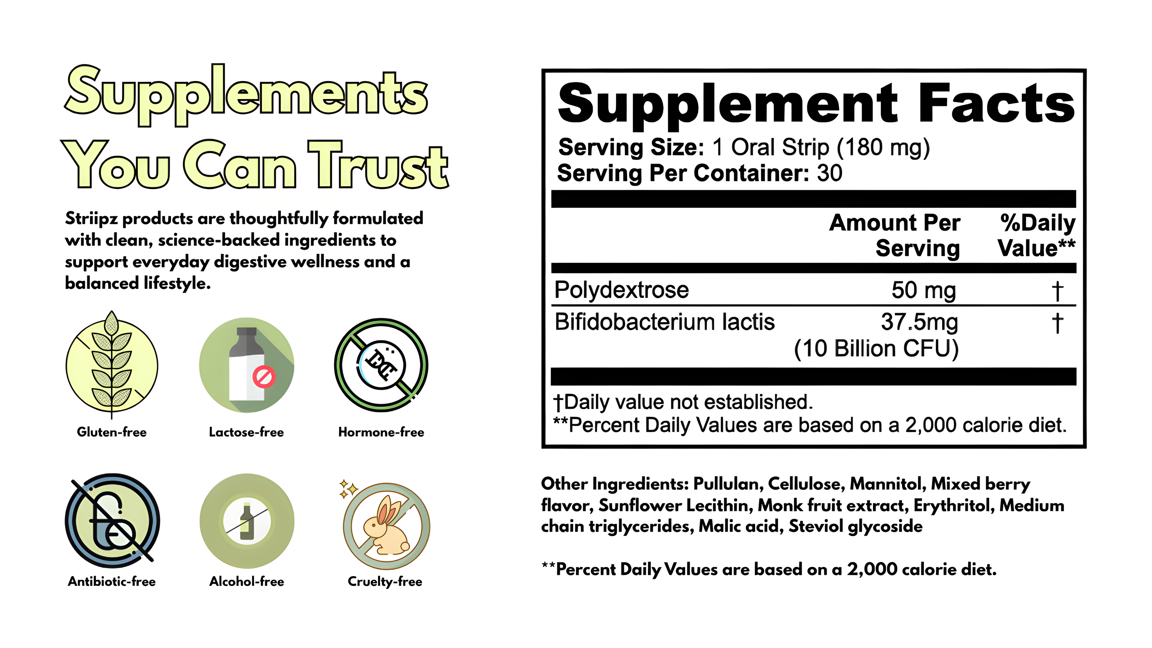 - Optional Pairing: These strips work well alongside balanced nutrition, mindful eating, and an active lifestyle to help maintain digestive comfort.
