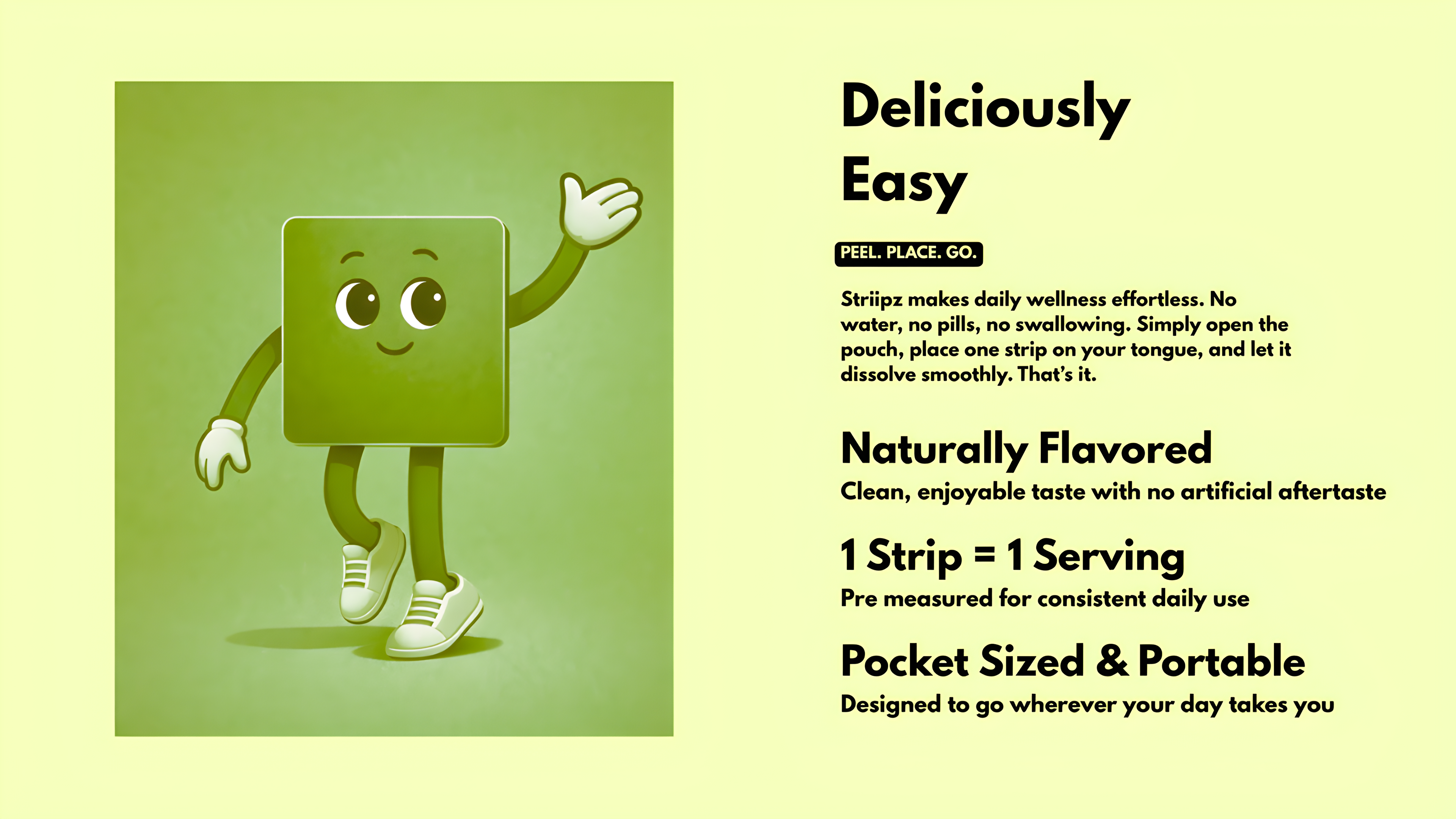 - Timing: You may take the strip at any time of day that best fits your routine.
